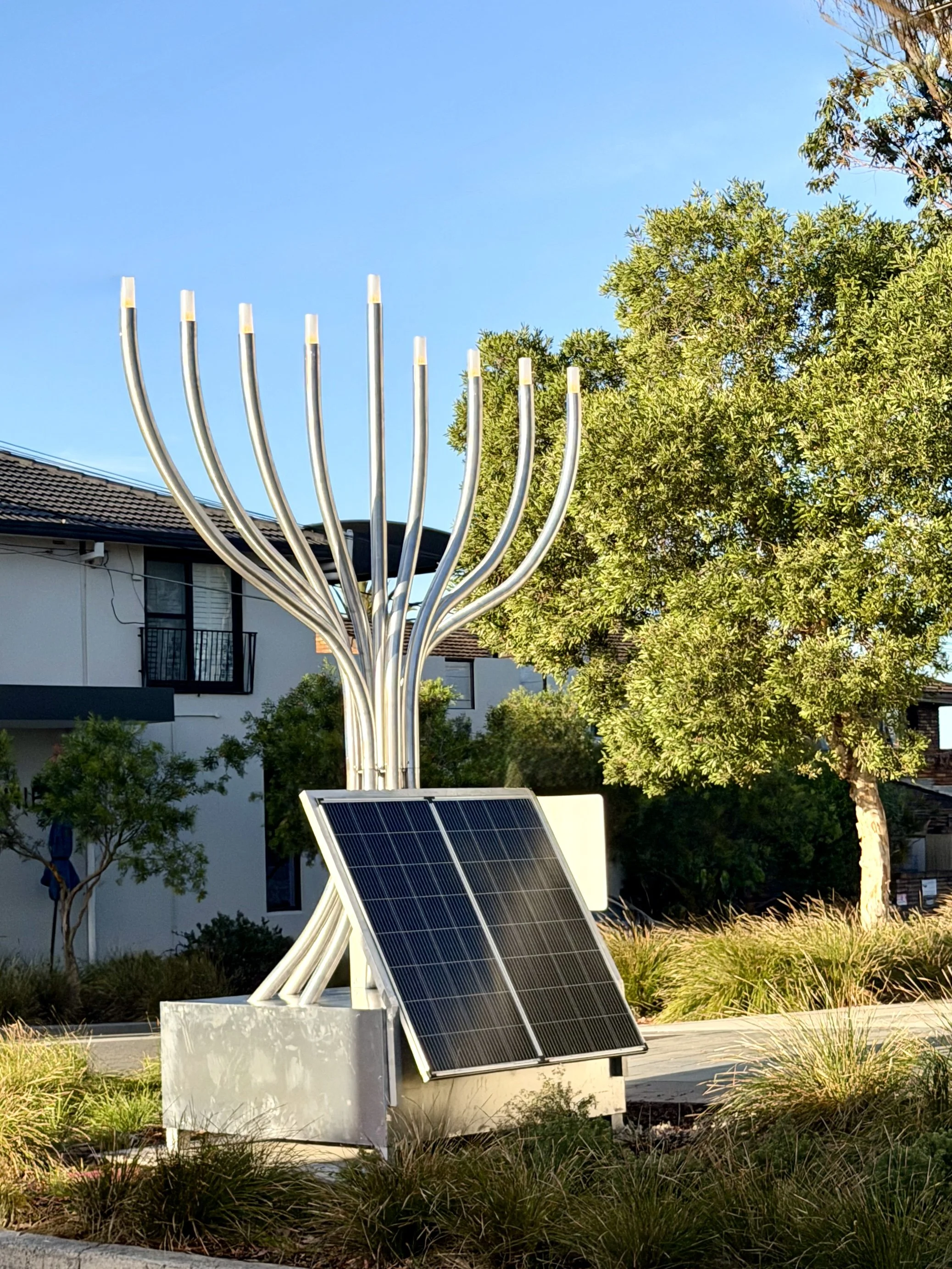 Commissioned by Waverley Council, the installation creates a new public ritual: a Chanukiah illuminated not by fuel or electricity from the grid, but by energy captured from the sun. It offers a moment of reflection on resilience - both ancient and modern - and how Jewish tradition can sit meaningfully within today’s environmental landscape.